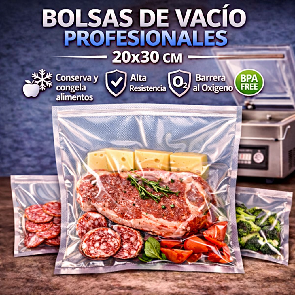 El envasado al vacío permite prolongar significativamente la vida útil de los alimentos perecederos, ya que elimina el oxígeno y otros gases responsables de la oxidación y del crecimiento de bacterias. Además, su alta transparencia permite visualizar el contenido con claridad, y su formato optimiza el espacio en refrigeradores y congeladores.